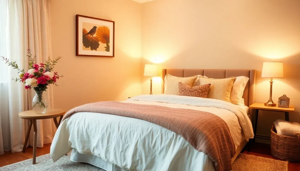 Lighting plays a crucial role in creating a cozy atmosphere. Soft, ambient lighting is vital for relaxation, so using table lamps or wall sconces works well. Dimmable fixtures allow adjustment based on mood and time of day. Natural light enhances warmth; sheer curtains can provide privacy while allowing sunlight to filter in. Incorporating accent lighting, such as fairy lights or candles, adds a charming touch. A bedside lamp offers convenience for reading or late-night tasks. With the right lighting, a guest bedroom becomes a soothing escape.